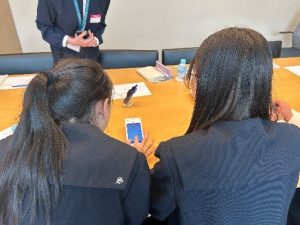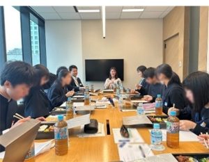 現場社員との座談会では、生徒から「これからのキャッシュレス決済はどんなふうに進化していくと思いますか?」と問われ、「外国で普及し始めている、顔認証などの生体認証による決済が日本にもやってくるのではないか。カードやスマートフォンが無くても体一つで買い物ができる日が来るかもしれない」と答えると、「そうなったらとても便利そう」と目を輝かせていました。